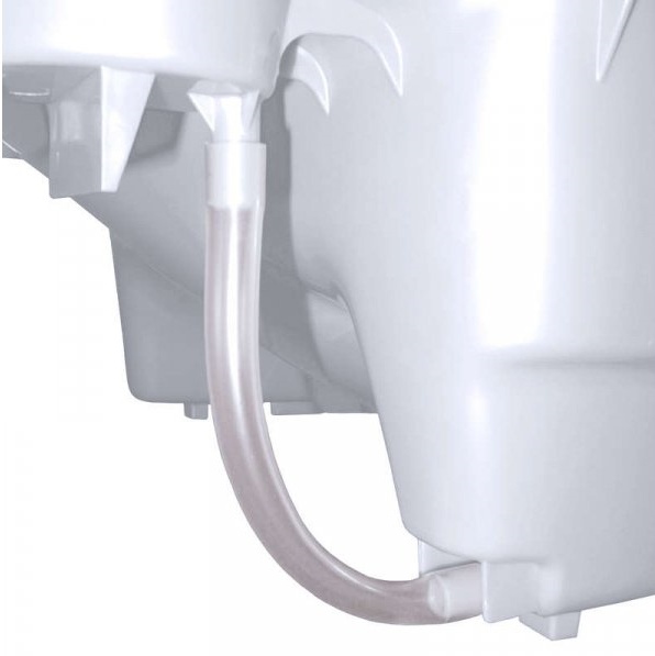 Два отверстия под мыльницей соединяются специальной трубочкой. Отсоединив ее от верхнего отверстия, удобно выливать воду, не наклоняя ванну. У ванны предусмотрены углубления для мыла, мочалки и игрушек и отверстие для крючка.