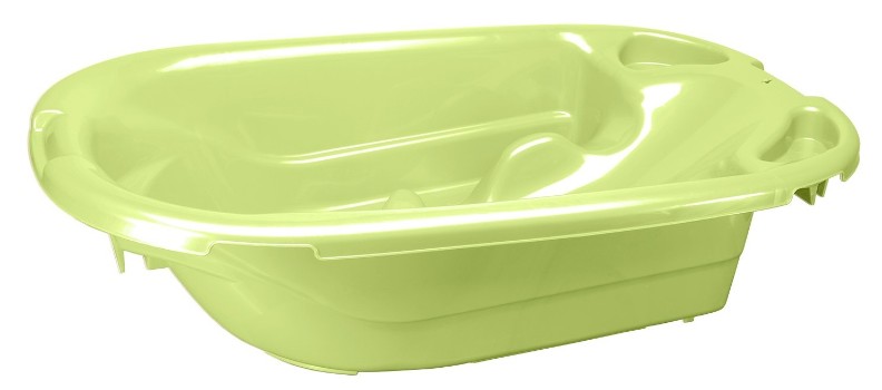 Благодаря сложной форме ванна позволяет купать детей в положении лежа (до 6 месяцев) и сидя (от 6 месяцев). Одна сторона ванны выполнена в форме горки, на которую можно уложить ребенка, чтобы не держать его на весу. Специальный упор предохраняет ребенка от соскальзывания под воду.