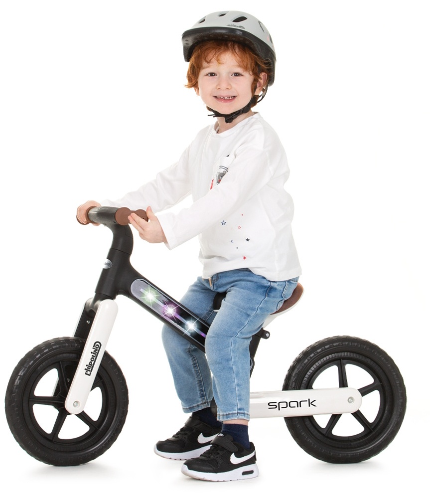Беговел Chipolino Spark развивает безопасным способом координацию и чувство скорости, помогает ребенку сохранять равновесие и безопасность, которые возникают из постоянного контакта ног ребенка с землей. Ребенок учится балансировать во время езды на беговеле, отрабатывая различные движения (повороты влево и вправо), а также контролируя скорость в зависимости от уровня готовности. Игрушка подходит для детей от 3 лет и весом до 25 кг. Игрушка оснащена встроенным рамочным модулем со светодиодами, которые мигают в разных режимах и цветах, чтобы развлечь ребенка. Игрушка работает от батареек 3 шт., размер AA/1.5V (LR6) - в комплект не входят. Эта игрушка развивает чувство равновесия, делает переход на стандартный велосипед чрезвычайно легким и стимулирует физическое развитие ребенка с самого раннего возраста. Чрезвычайно легкая рама, благодаря чему ребенок может легко кататься на игрушке, толкая ее ногами. Удобное сиденье - регулируется по высоте. Резиновые противоскользящие накладки на ручках. 12-дюймовые колеса. Подножки - ребенок может держаться за ногу во время езды и балансирования. Забавный и красочный дизайн. Товар предлагается в красочной подарочной коробке. Данная игрушка изготовлена в соответствии с требованиями европейских директив и стандартов в отношении безопасности игрушек.