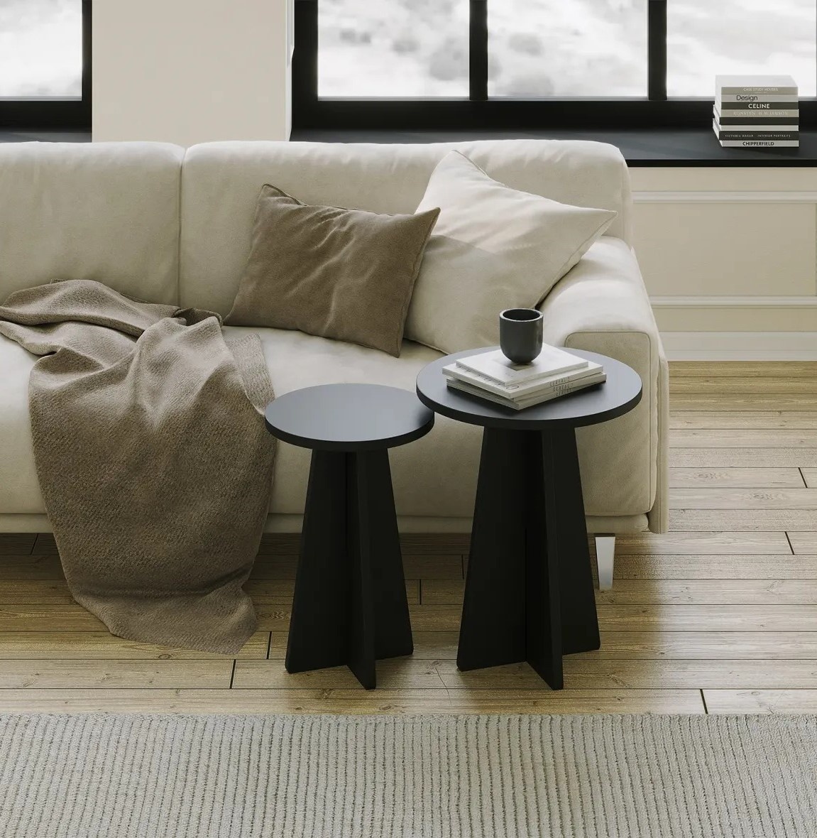 В набор входят две столешницы разных размеров, что позволяет адаптировать их под различные задачи и сценарии использования. Будь то размещение декора или удобное место для чашки кофе — столики обеспечивают достаточно пространства и функциональности.