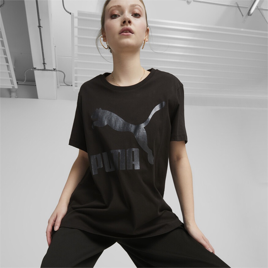 Женская футболка Puma Classics Logo Tee (S) Puma Black/Shimmer M