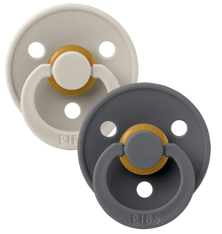 Соска Bibs из коллекции Color имеет круглую внешнюю форму с 3 отверстиями, которые обеспечивают циркуляцию воздуха и предотвращают раздражение вокруг рта ребенка. Кольцо вокруг пустышки круглое и украшено гравировкой BIBS. Пустышки BIBS Color изготовлены из латекса, материала, полученного из жидкости каучукового дерева (гевеи). Эту жидкость очищают, получая при этом латекс — прочный, эластичный, мягкий материал, по консистенции похожий на материнскую грудь.