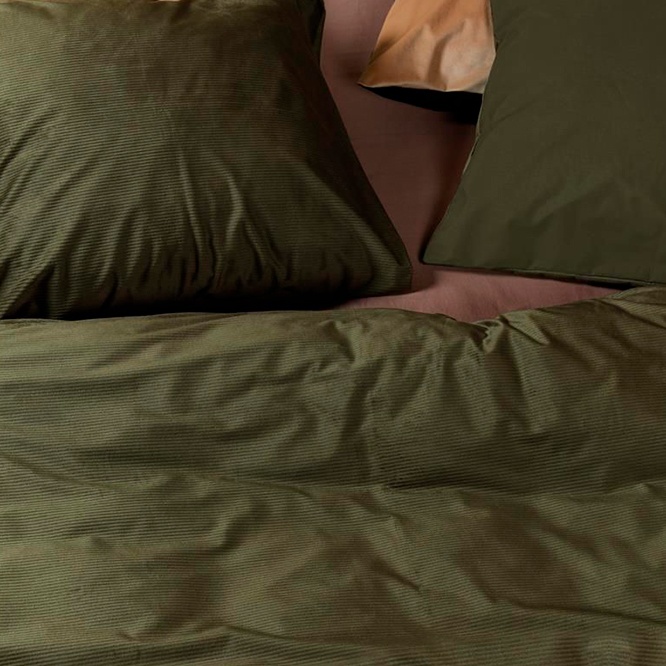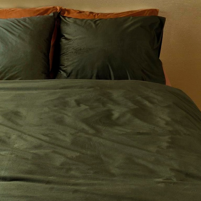 Пододеяльник At Home от BeddingHouse Cosy Corduroy – Green создает атмосферу покоя, гармонии и естественного спокойствия. Глубокий темно-зеленый цвет пододеяльника создает ощущение защищенности и располагает к расслаблению. Его прекрасно сочетают с теплыми земляными тонами, которые усиливают естественную атмосферу и добавляют ощущение тепла и уюта. Но вы также можете выбрать контрастные цвета, такие как кремово-белый или светло-серый, которые подчеркнут глубокий зеленый цвет и придадут более изысканный вид. Для создания модного образа сочетайте этот глубокий зеленый цвет с металлическими акцентами, например, золотом или медью. Эти цвета добавят нотку гламура и создадут в вашей спальне роскошную и стильную атмосферу.