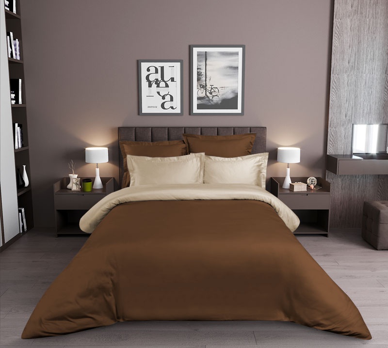 Постельное бельё Cottony Satin de Lux Uniton Brown/Ivory 2E (15080/17133)