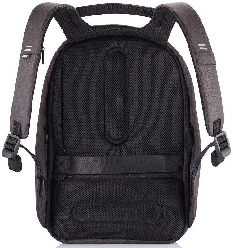 Рюкзак-антивор XD Design Bobby Hero Regular Anti-Theft Backpack включает отделение для ноутбука 15,6″ и отделение для планшета 12,9″. Рюкзак изготовлен из непрорезаемого четырехслойного синтетического материала, созданного при помощи переработки пластиковых бутылок. На язычки потайной молнии рюкзака можно повесить навесной замок. Встроенный USB-порт позволит вам заряжать ваши гаджеты на ходу, а карман с защитой RFID защитит данные ваших карт от сканирования злоумышленниками.