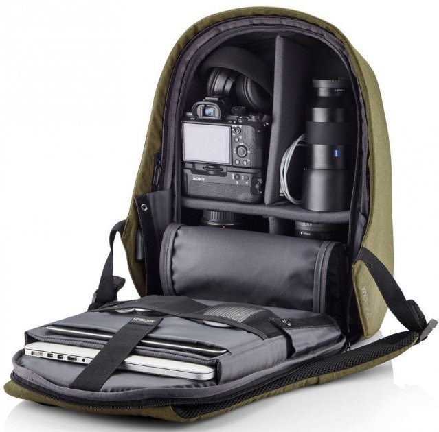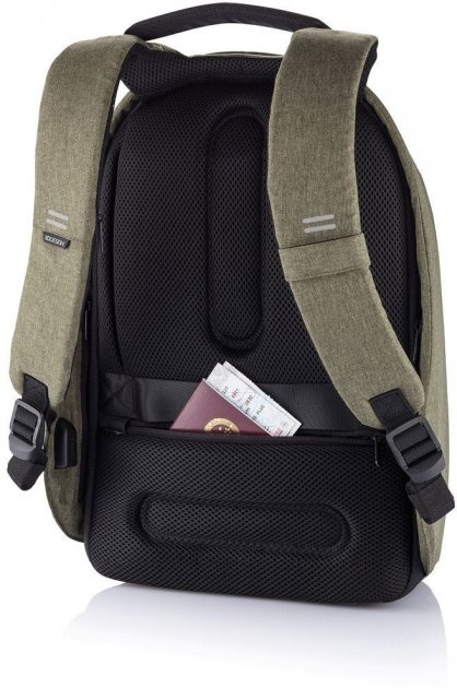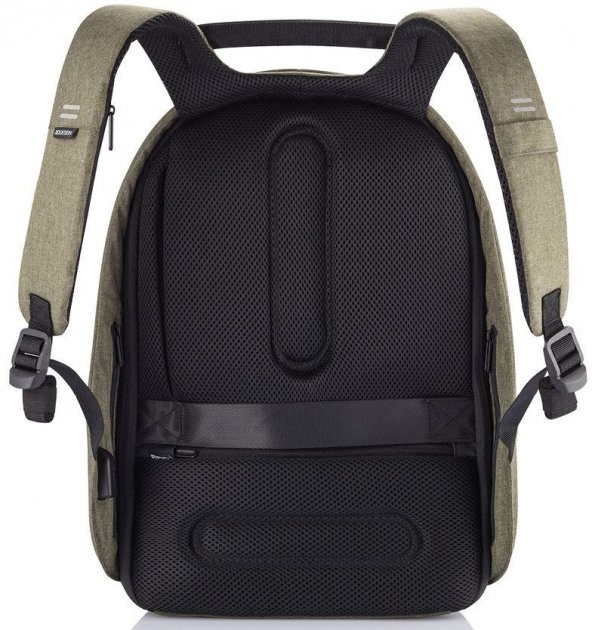 Рюкзак-антивор XD Design Bobby Hero Regular Anti-Theft Backpack включает отделение для ноутбука 15,6″ и отделение для планшета 12,9″. Рюкзак изготовлен из непрорезаемого четырехслойного синтетического материала, созданного при помощи переработки пластиковых бутылок. На язычки потайной молнии рюкзака можно повесить навесной замок. Встроенный USB-порт позволит вам заряжать ваши гаджеты на ходу, а карман с защитой RFID защитит данные ваших карт от сканирования злоумышленниками.