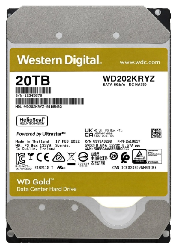 Жесткий диск Western Digital Gold 20Tb (WD202KRYZ)