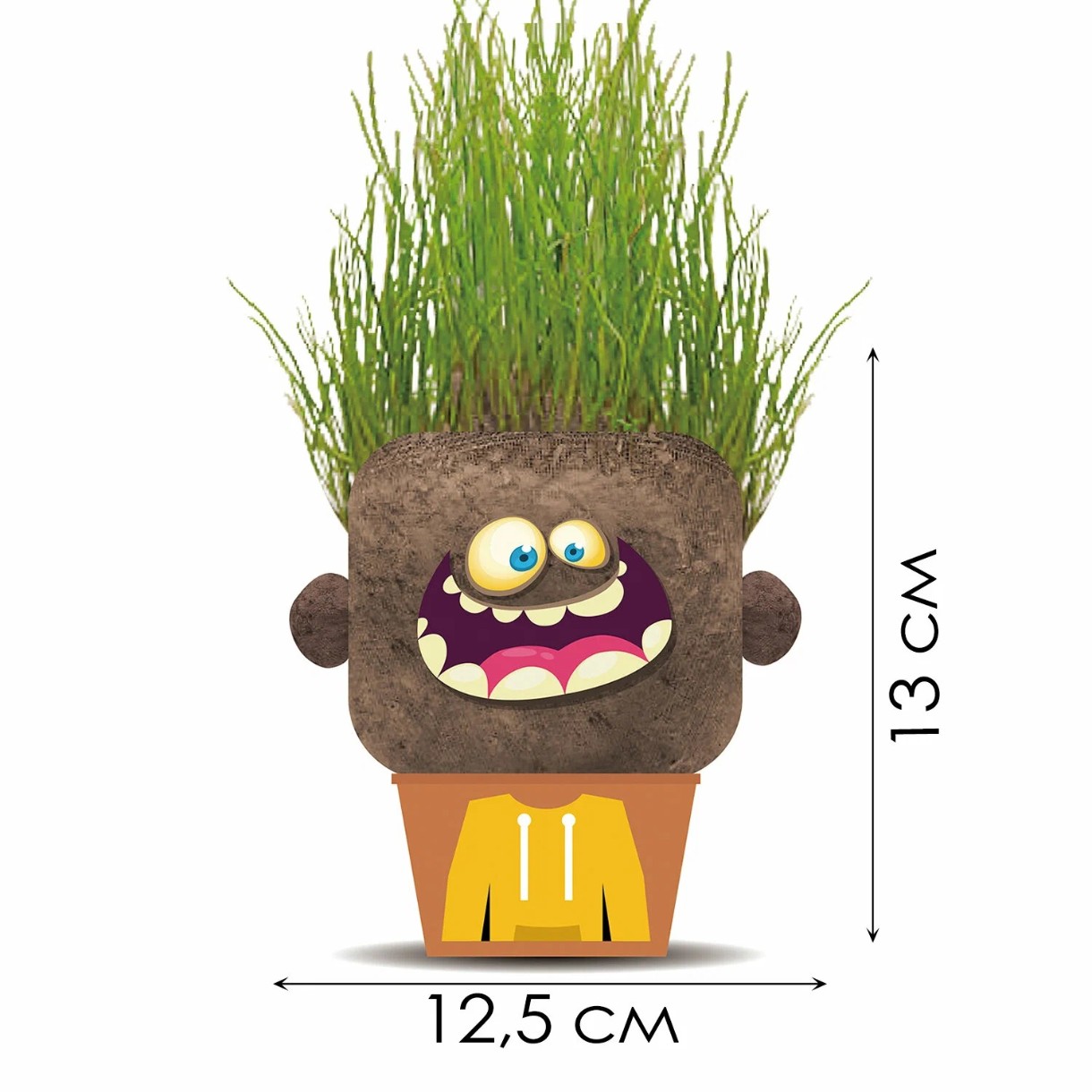 Инструкция: замочите "голову" в воде на 1-2 часа, затем поместите ее на наполненную водой основу. Держите травяного монстрика во влажном состоянии до тех пор, пока семена травы не прорастут через 5-7 дней.