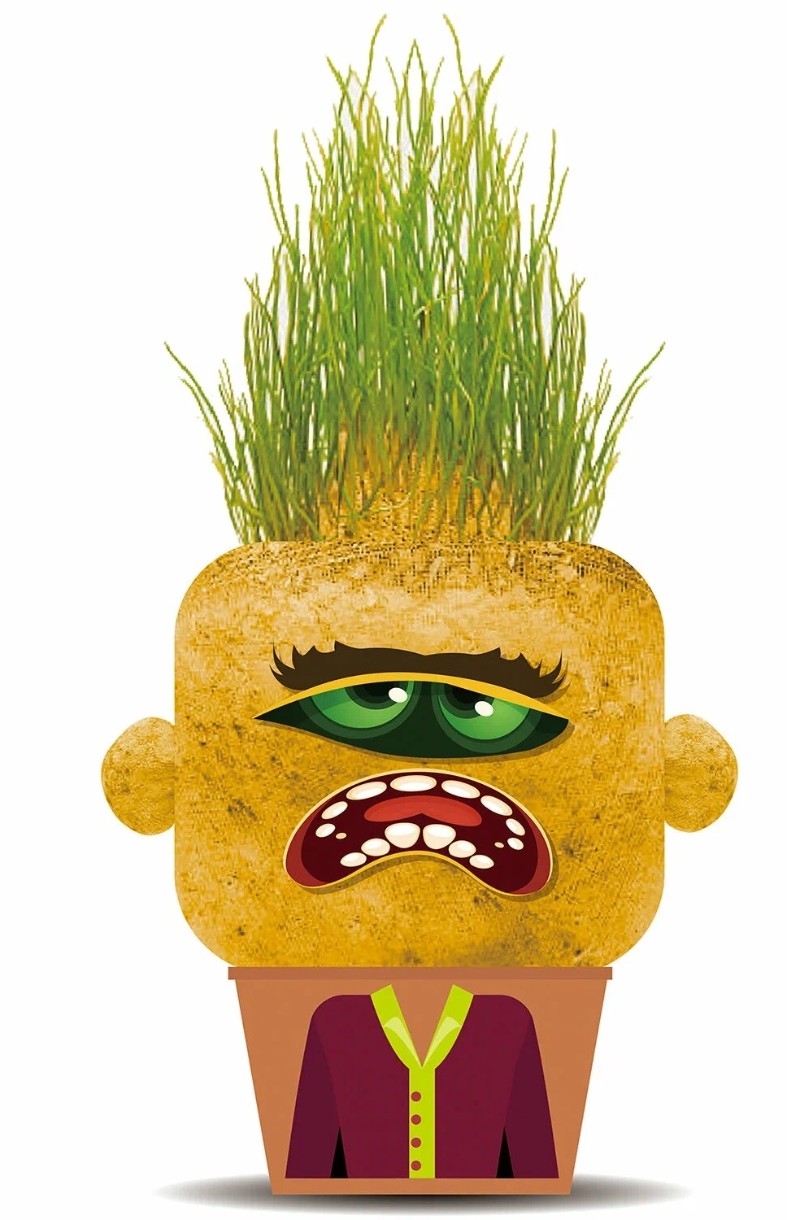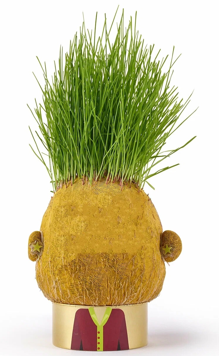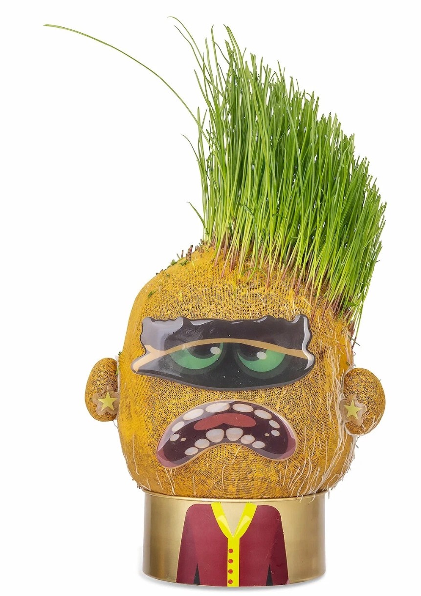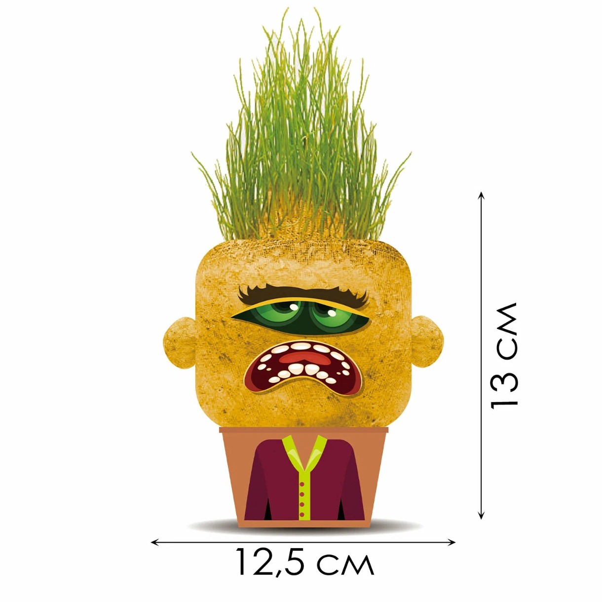 Инструкция: замочите "голову" в воде на 1-2 часа, затем поместите ее на наполненную водой основу. Держите травяного монстрика во влажном состоянии до тех пор, пока семена травы не прорастут через 5-7 дней.
