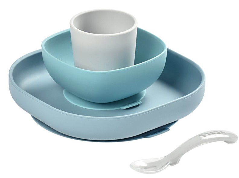 Набор силиконовой посуды состоит из тарелки и чаши с присоской, а также стакана (силиконовая ложка 2-й размер включена в набор) Тарелка и чаша с присоской: разработаны специально, чтобы сопровождать ребенка и его родителей во время первого приема пищи. Дизайн и форма: предназначенные для облегчения приема пищи.