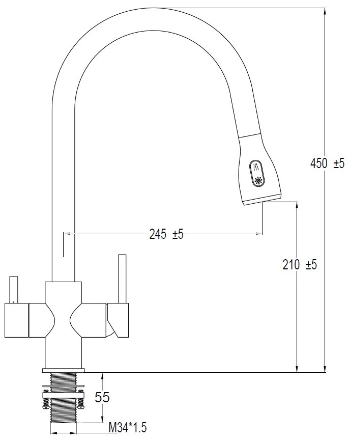 Высота излива210 мм