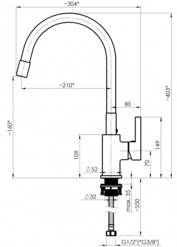 Длина излива210 мм