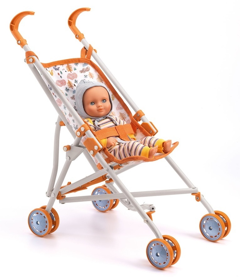 Настоящая коляска от Djeco в осенних тонах и лесном узоре для прогулок с куклой. Легкий и складной, он компактен и его легко взять с собой куда угодно. Эта коляска обещает приятные прогулки в помещении и на улице. Незаменимый аксессуар для прогулок с куклой! Подходит для кукол ростом от 30 до 36 см. Легко складывается. Экономит место. Компактный и легкий: легко взять с собой куда угодно. Сиденье из обработанной ткани легко чистится губкой и мыльным раствором. Две точки закрытия для большей безопасности и защиты мизинцев. Прочность: пластиковые соединения и колеса. Хорошая устойчивость – ребенок может двигаться в своем темпе.