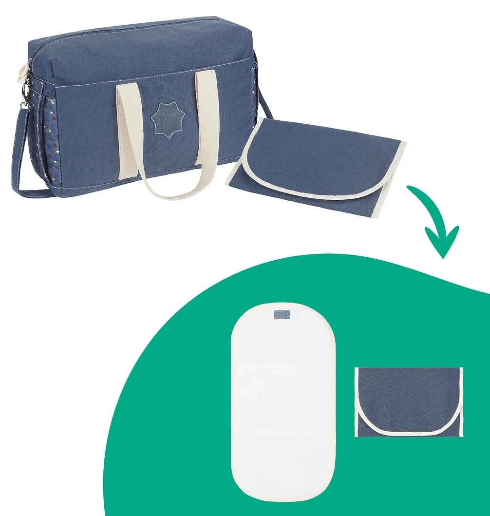 Сумка из коллекции Safari изготовлена из велюра и хлопкового полотна, чтобы вещи малыша были в полной сохранности. Велюровая сумка для подгузников в стиле боулинга имеет большую вместимость и может носиться на плече в качестве аксессуара для коляски, а входящий в комплект коврик для пеленания идеально подходит для путешествий с малышом. Можно носить несколькими способами: в руке, на плече, через плечо или на корпусе коляски (зажимы для коляски входят в комплект) .Входящий в комплект коврик для пеленания складной.