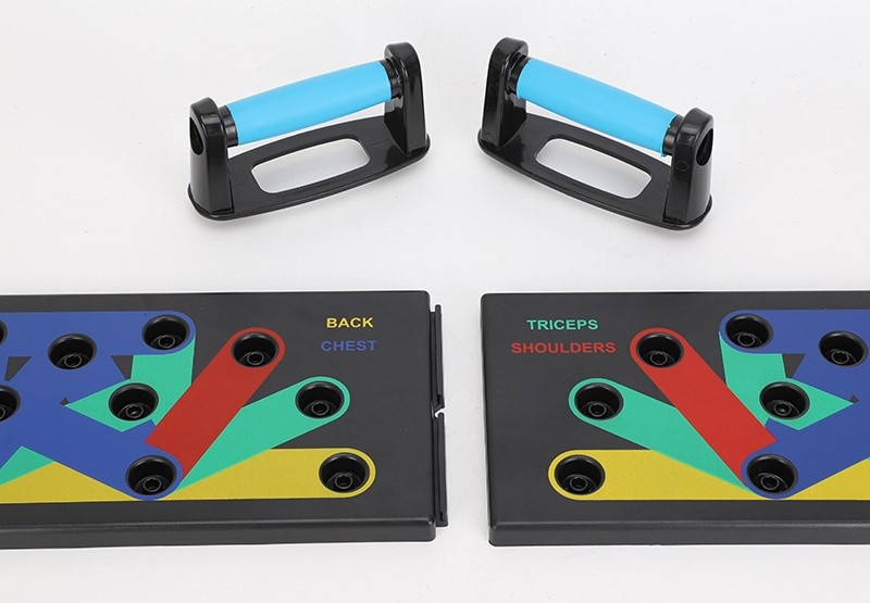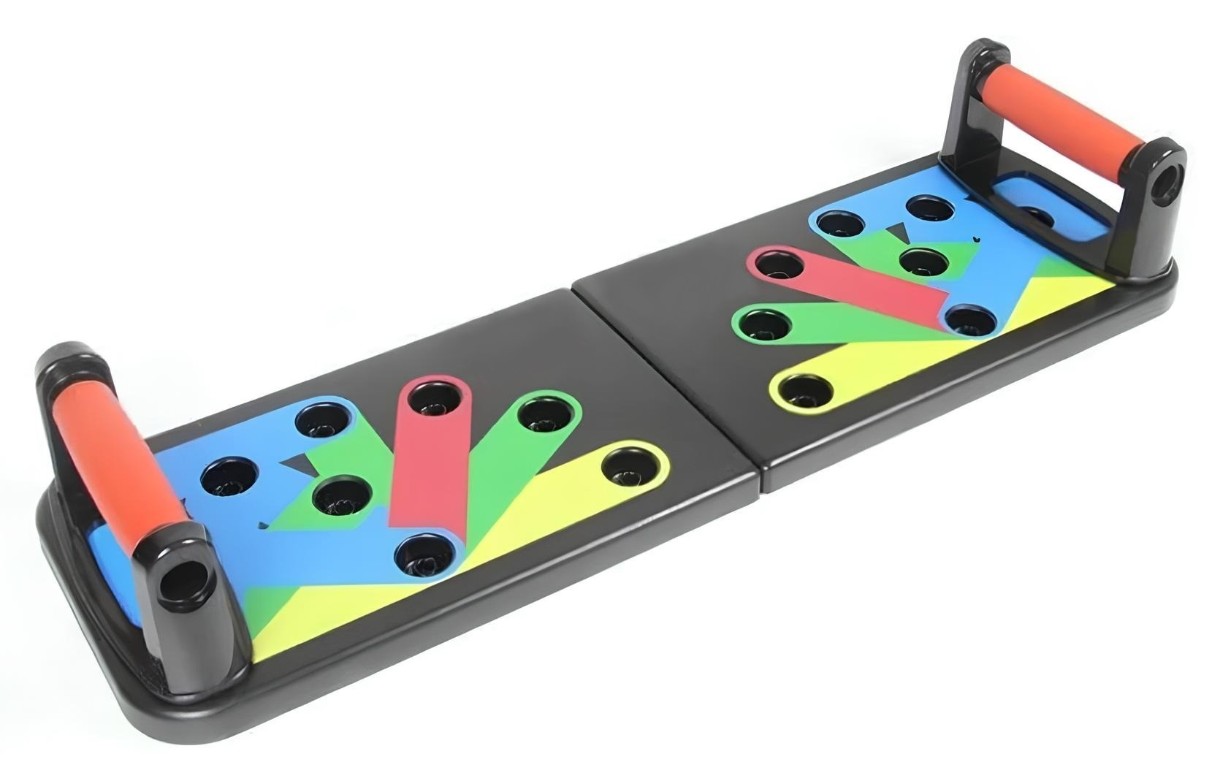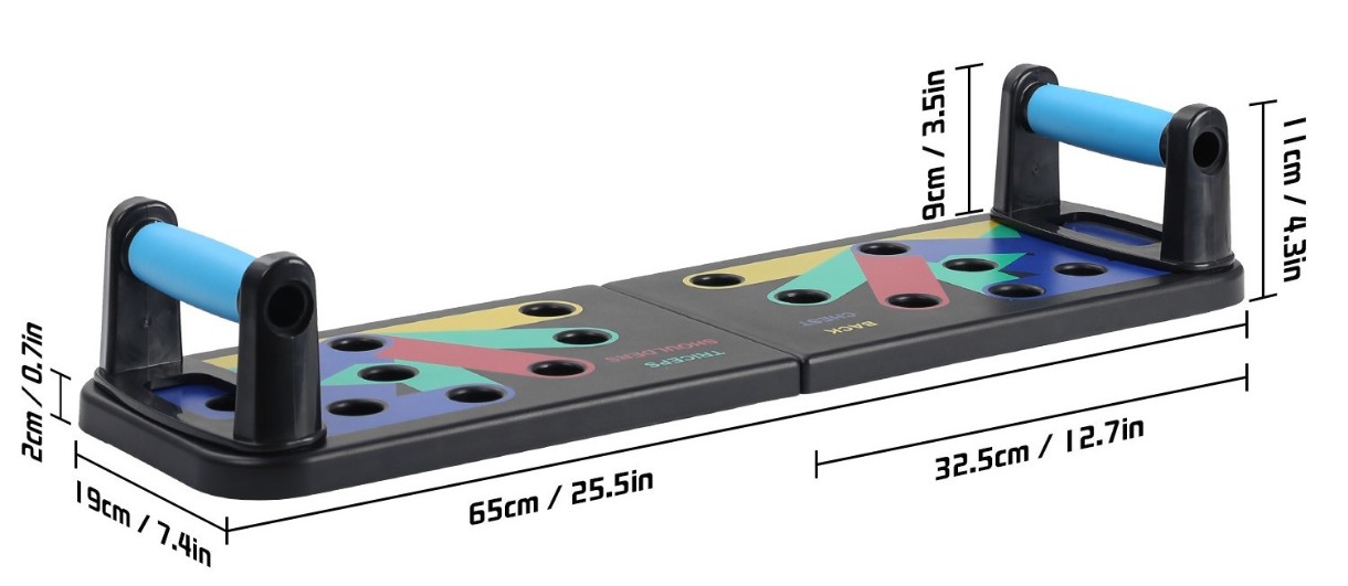 Цветовая разметка делится по группам мышц: красный - грудь, синий - плечи, зелёный - спина, жёлтый - трицепсы. Прибор удобен своей компактностью. После занятий, его можно сложить вдвое и убрать в шкаф либо под кровать. Упор для отжиманий - это самое удобное и эффективное средство для занятия дома, на даче или даже на отдыхе , не пропуская при этом режим тренировок! Не упусти свою возможность привести тело в порядок, и ты даже успеешь покрасоваться своими формами этим летом на пляже!
