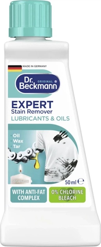 Dr. Beckmann Expert Lubricants & Oils 50 мл- это средство для удаления пятен от смазочных материалов и масел с ткани и одежды. Его мощная формула разработана для растворения и эффективного удаления таких загрязнений, как масла для двигателя, смазки, жиры, сливочное масло, маргарин, пищевые масла, пятна от автомобилей, дизельного топлива и другие технические масла, при этом нежно воздействуя на волокна ткани. Средство подходит для стираемых и нестираемых тканей, но не рекомендуется для кожи, шелка, шерсти и ковров.