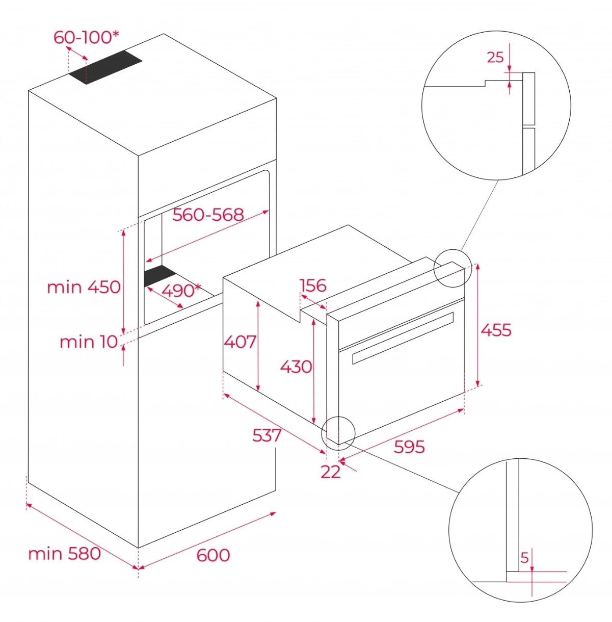 Размеры ниши для встраивания (ВхШхГ)45x56x49 см