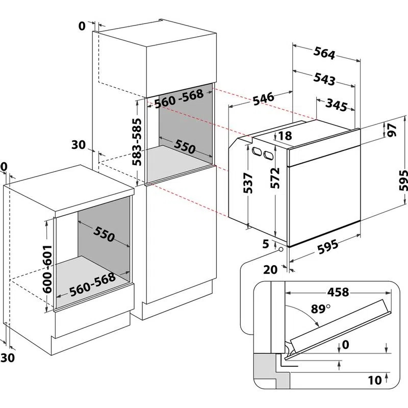 Размеры ниши для встраивания (ВхШхГ)60x56x55 см