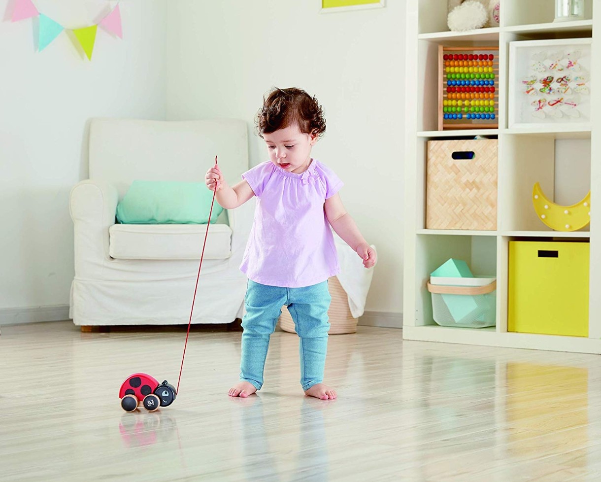 Когда вы везёте эту веселую божью коровку, ее крылья в восторге хлопают. Отлично подходит для поощрения детей ползать, ходить и исследовать.