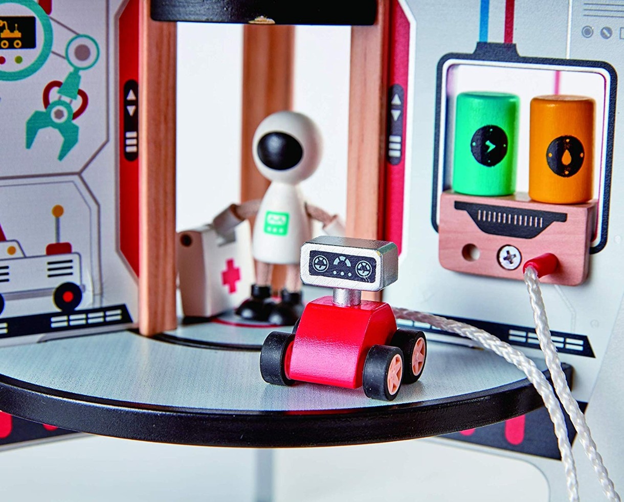 Четырехуровневая Ракета развивает воображение, внимание и мелкую моторику у детей, она интерактивная поскольку позволяет присоединять и откручивать множество деталей. Игрушки Hape изготовлены из экологически чистых материалов, а краски на водной основе — не токсичны, не содержат растворителей, тяжелых металлов и прочих вредных веществ.