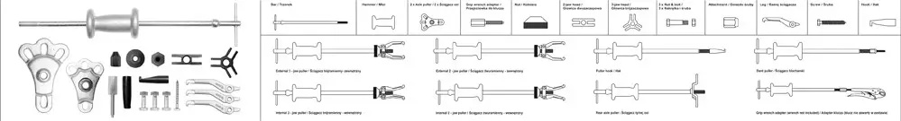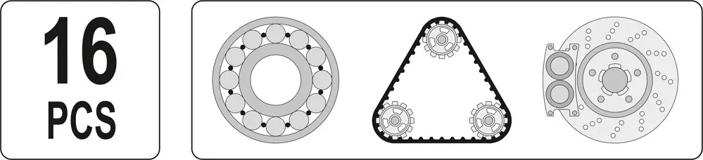 Без этого универсального набора съемников подшипников проведение работ по обслуживанию и замене элементов двигателя и ступицы будет практически невозможным. Все инструменты из представленного универсального набора выполнены из высококачественной инструментальной стали, благодаря чему каждый элемент способен выдерживать высокую механическую нагрузку.