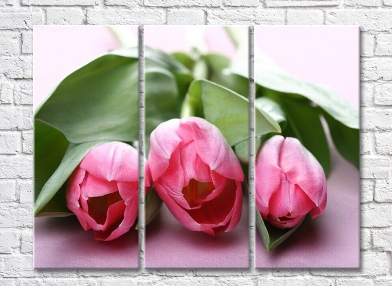Картина Gallerix Pink tulip flowers on a background of leaves (500598)