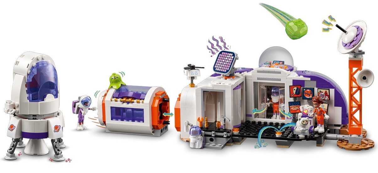 Вдохновите юных исследователей на изучение космического пространства с помощью игрушки LEGO® Friends Mars Space Base и ракеты (42605) для детей, девочек и мальчиков в возрасте от 8 лет. В набор для сборки входят 3 мини-куклы и фигурка кошки, а также ракета, исследовательский марсоход, модульная исследовательская база и аксессуары для научных игрушек.
