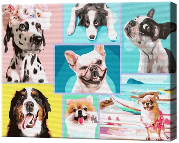 Описание Картина по номерам Art Gallery Premium Коллаж собачек GX43119