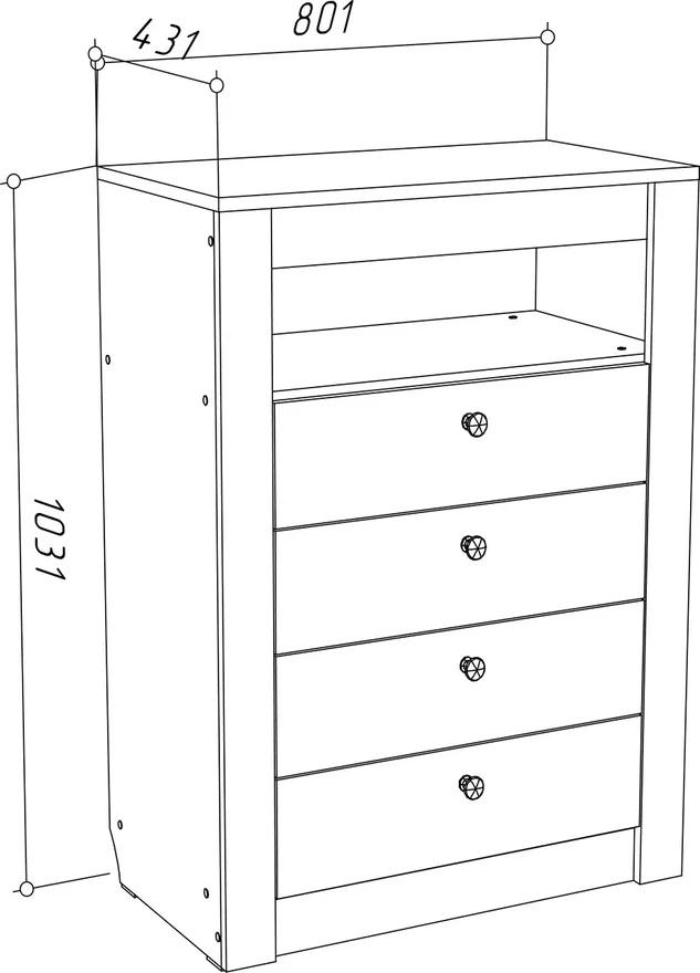 Характеристики Комод ML-Mobila Гамма 16 4 Ящика 800 МЛ Дуб Крафт Белый