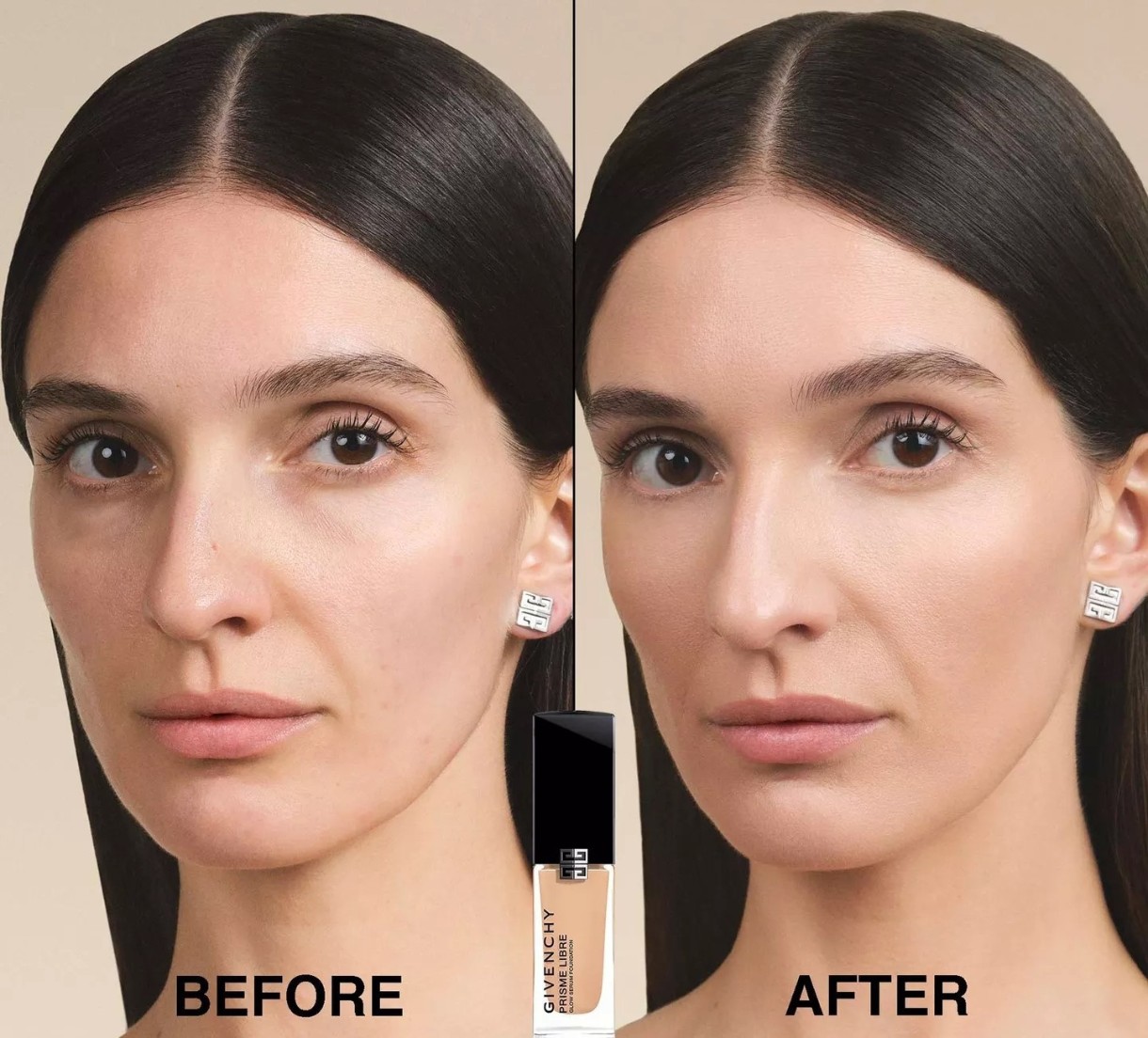 Тональный крем-сыворотка Givenchy Glow Serum Foundation, входящий в культовую коллекцию Prisme Libre, создает сияющую основу с эффектом мягкого фокуса, которая держится до 24 часов. Этот легкий флюид подходит для всех типов кожи и обеспечивает среднее покрытие, которое можно усилить по желанию. Переносимая и водостойкая формула с длительным сроком носки обогащена четырьмя цветными пигментами, которые помогают заметно выровнять тон кожи, а также технологией Prismatic Light для эффекта осветления и размытия. Тональный крем также улучшает естественный внешний вид кожи. Благодаря гиалуроновой кислоте, керамидами и экстракту юдзу в составе формула обеспечивает 48-часовое увлажнение кожи, заметно повышая ее упругость и эластичность. Через три недели цвет лица становится более сияющим, ровным и увлажненным даже после снятия макияжа.