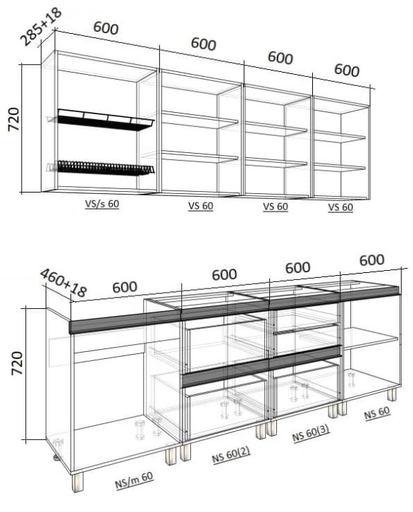 - Нижний шкаф НГ 60(3) – 1 штука