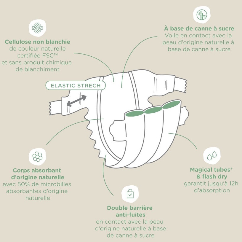 Подгузники Tamboor Green T1 (2–5 кг), 41 шт.- это экологичные и гипоаллергенные одноразовые подгузники, разработанные специально для новорождённых малышей с весом от 2 до 5 кг. Верхний слой подгузников изготовлен из натуральных волокон сахарного тростника, а микрогранулы в впитывающем слое на 50 % природного происхождения, что обеспечивает эффективное впитывание влаги и помогает поддерживать кожу сухой до 12 часов. Подгузники не содержат лосьонов, ароматизаторов, хлора и парабенов-это делает их подходящими даже для самой чувствительной кожи малыша. Продуманная анатомическая форма, двойной барьер от протеканий и индикатор влажности помогают обеспечить защиту и комфорт на каждый день. Упаковка выполнена из бумаги без пластика, что делает её экологичной.