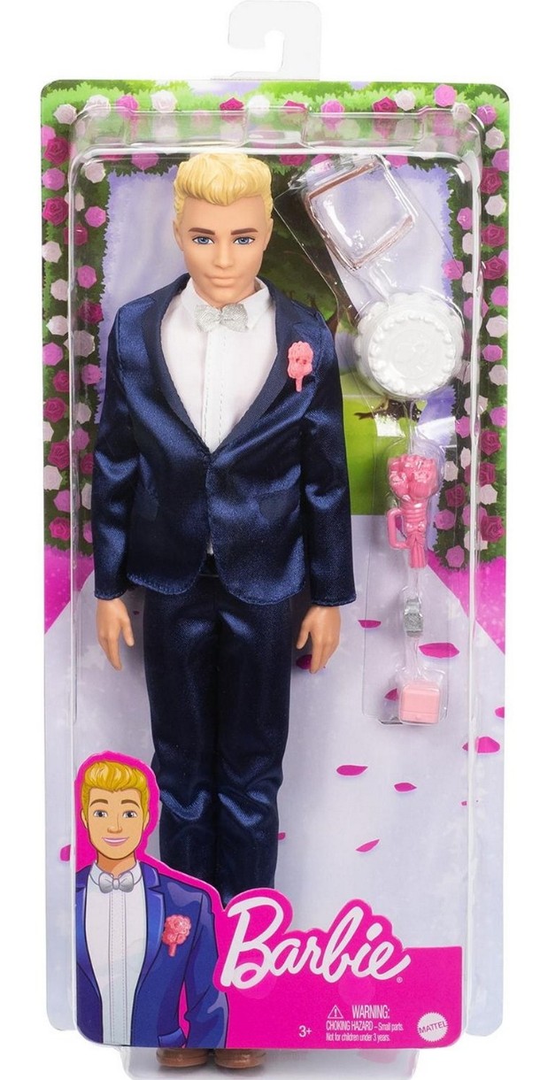 Как устроить грандиозную свадьбу для куклы Барби? Нет ничего проще! Вам потребуется немного воображения и жених в элегантном костюме! Кен с нетерпением ждет торжественного дня в атласном пиджаке, брюках в тон, белой рубашке и галстуке-бабочке. Завершает образ розовая бутоньерка, которая гармонирует с шикарным букетом в его руке. Дополнительные аксессуары, например, часы, свадебный торт, коробочка для колец, сделают игру реалистичнее и позволят юным мечтательницам придумать поистине волшебную историю для Кена и Барби!