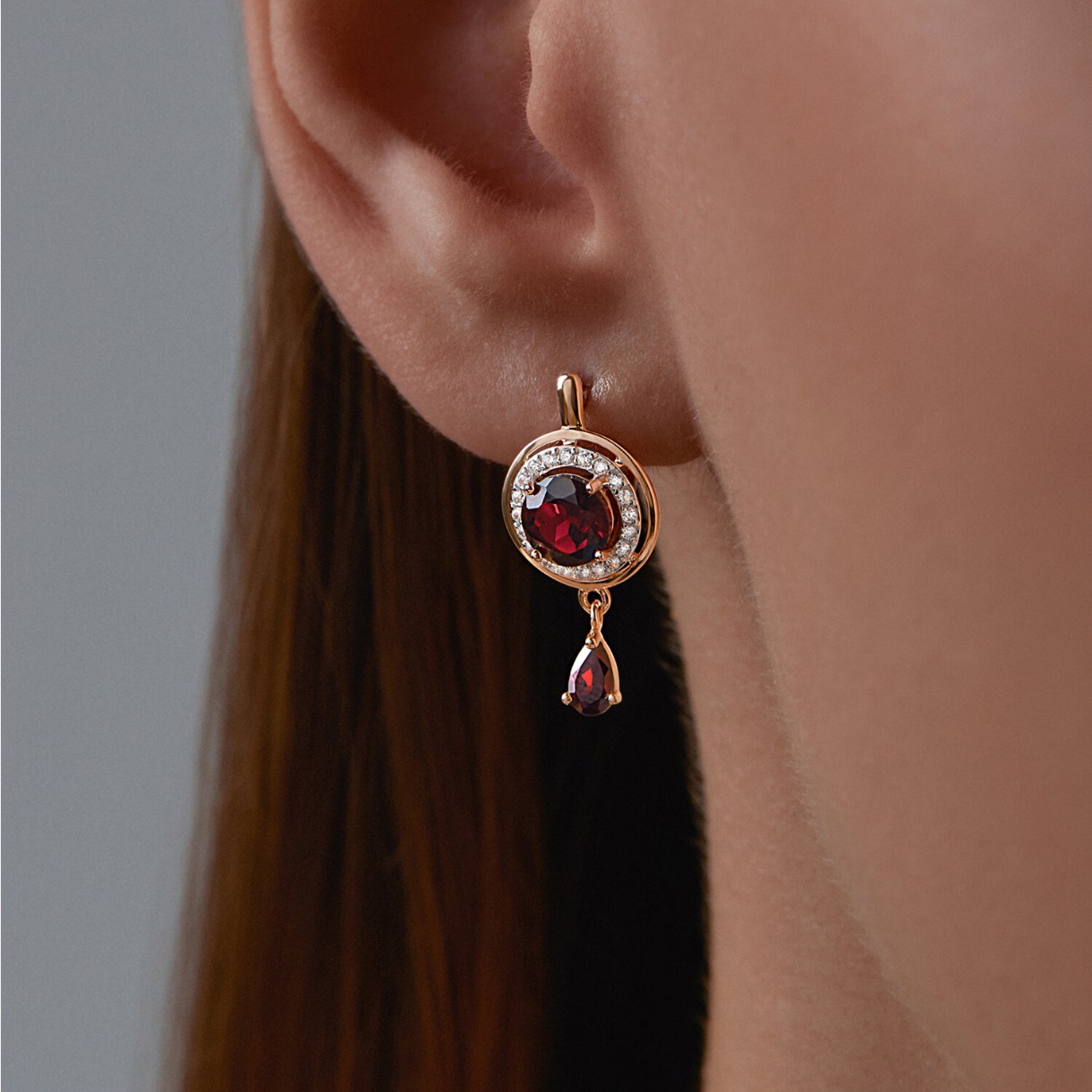 Серьги из золота с гранатами и фианитами Sokolov 51-321-01426-1 3,06g
