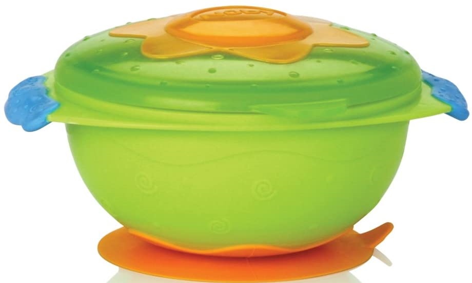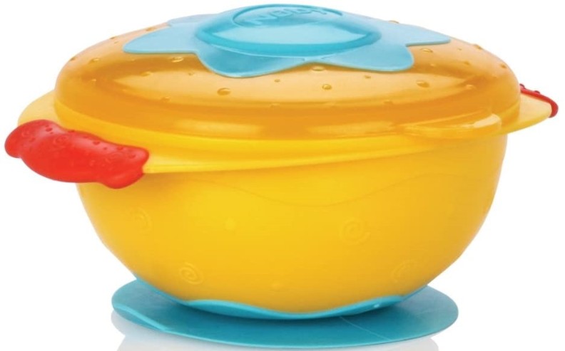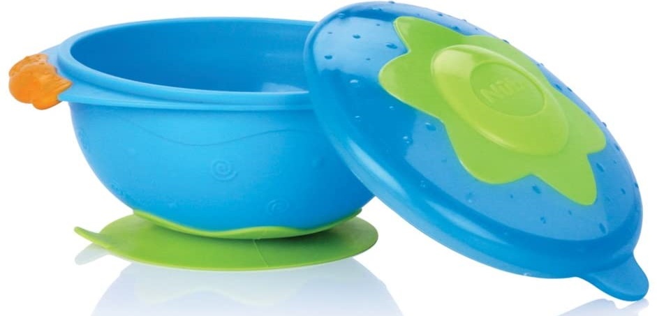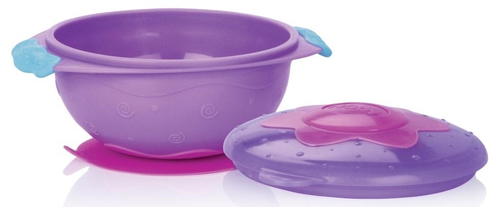 Глубокая тарелка с крышкой на присоске Nuby - делает процесс кормления легким для мамы и интересным для малыша. Удобно использовать во время путешествий или поездок в гости.