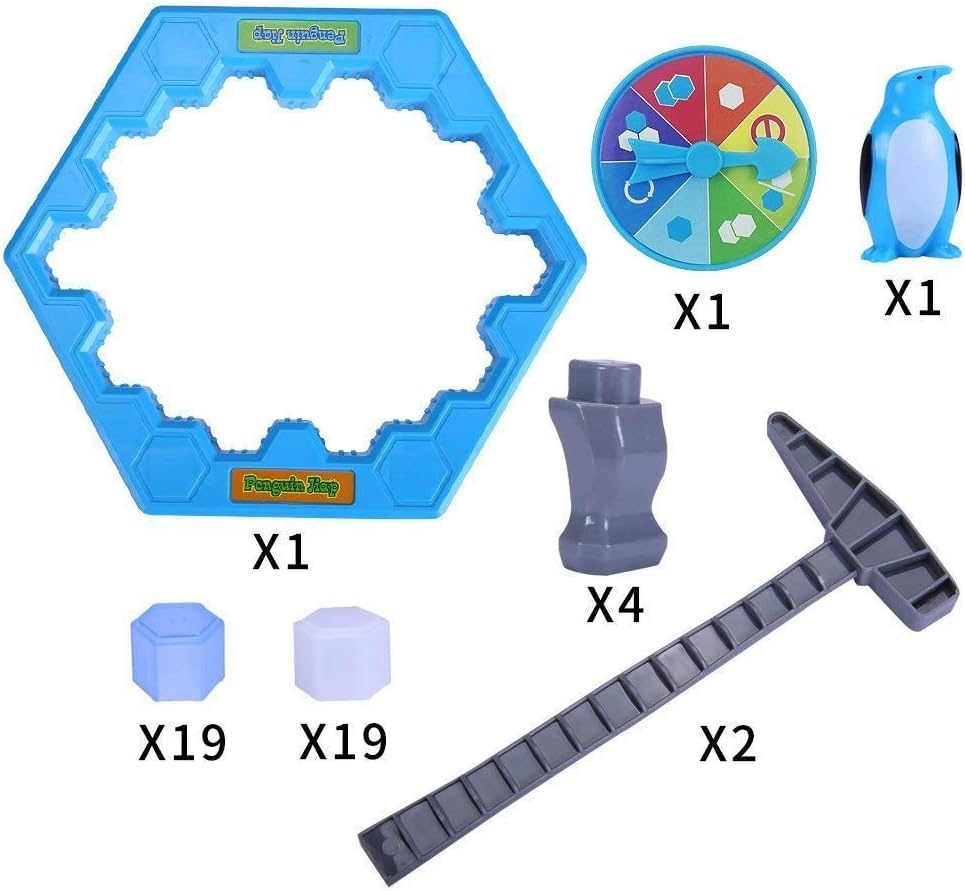 Комплектацияигровое поле, синие кубики льда - 19 шт, белые кубики льда - 19 шт, пингвин, ножки для игрового поля - 4 шт, молоточек - 2 шт