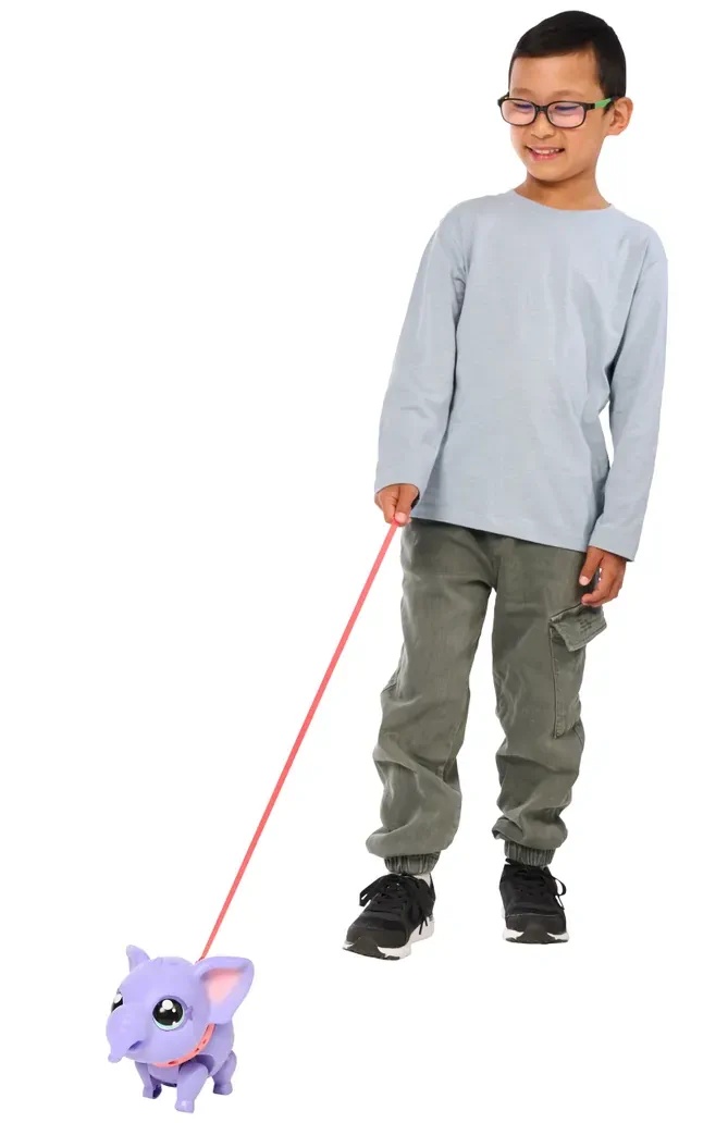 - Слоненок воспроизводит более 25 звуков и реакций, что делает каждое взаимодействие с ним увлекательным и по-настоящему живым;