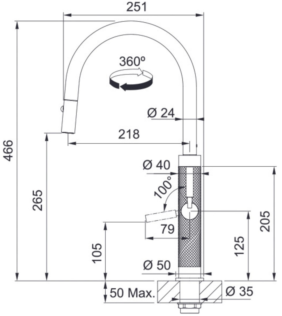 Угол поворота излива360 °