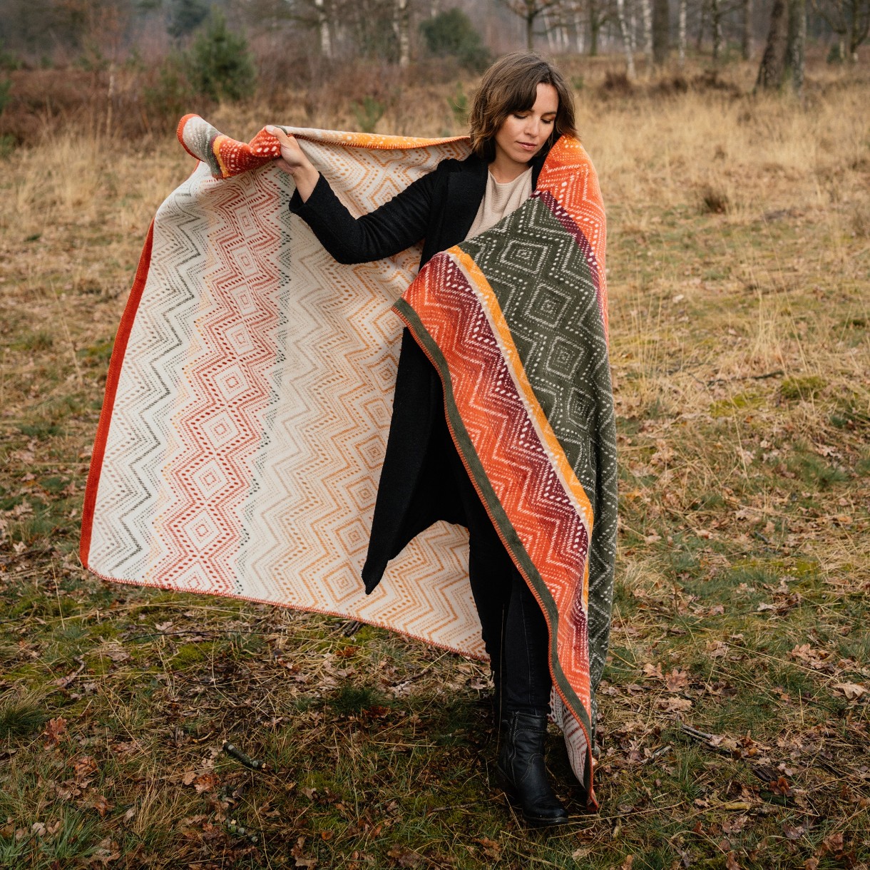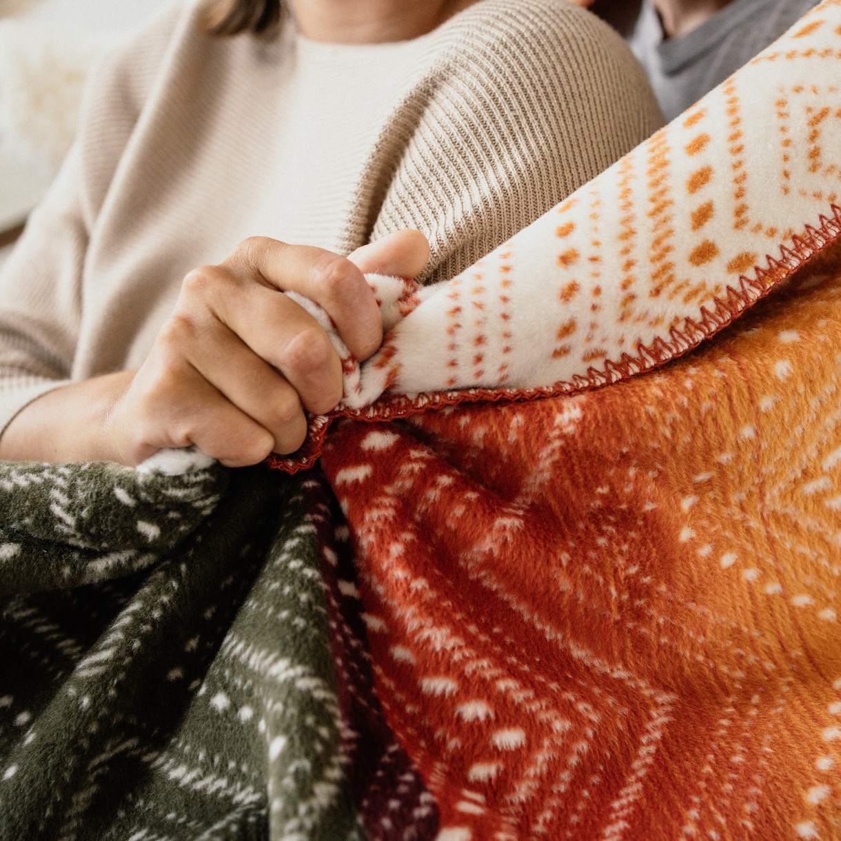 Плед оранжево-зеленого цвета очень мягкий и приятный на ощупь. Он изготовлен из смеси акрила и хлопка, что делает его очень уютным и обеспечивает комфортный отдых. Он особенно хорош для весеннего утра и долгих зимних вечеров, потому что он плотный и хорошо сохраняет тепло.