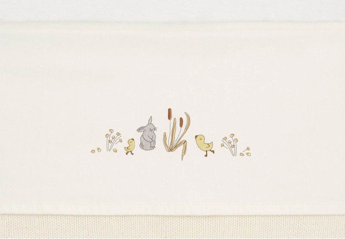 Создайте уютную и спокойную атмосферу для сна вашего малыша с простынёй Jollein Riverside. Этот очаровательный аксессуар украшен нежным принтом Riverside, на котором изображены зайчики, уточки и водные растения, выполненные в мягких, естественных оттенках.
