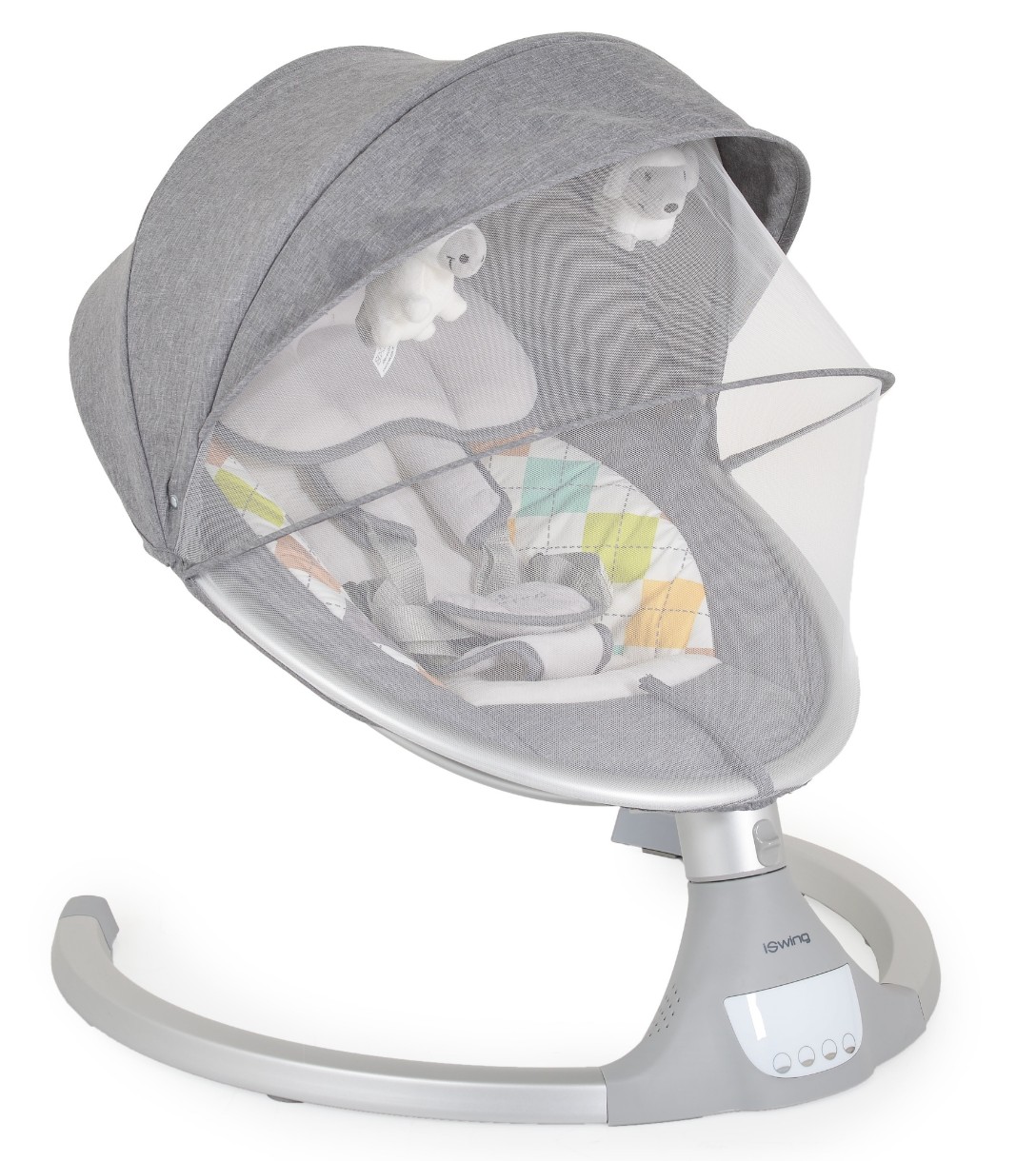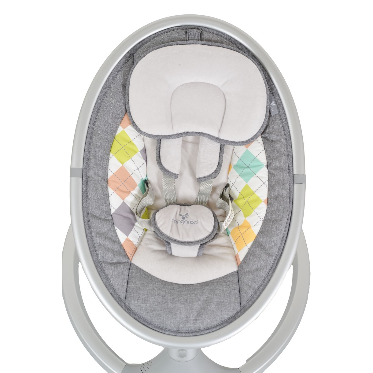 Эргономичное сиденье, которое может вращаться на 360 градусов, благодаря чему малыш всегда находится в поле зрения родителей. Мягкая подушка с подголовником. Балдахин с плюшевыми игрушками привлечет внимание ребенка. Ремень безопасности с 5-точечной системой крепления с подплечниками. Чехол из качественных материалов, съемный, легко чистится. Регулируемый солнцезащитный козырек с защитой от насекомых. Модель разработана в сотрудничестве с врачами. Пульт дистанционного управления для дистанционного управления С 12 песнями и 5 звуками природы, которые успокоят малыша. Современный дизайн из качественных материалов. Таймер для функции качания. Переходник в комплекте. Работает как от батареек, так и при подключении к электрической сети 220В, с помощью трансформатора, входящего в комплект поставки.