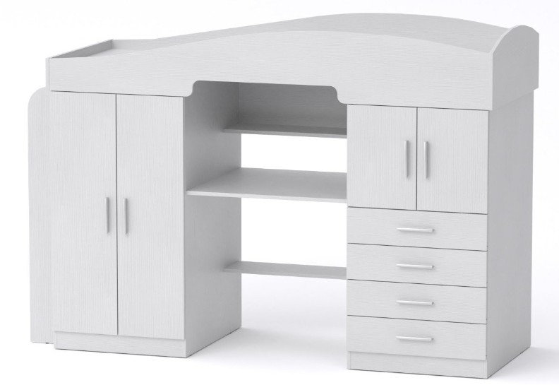 Кровать-чердак Универсал-2 - новинка, которую фабрика Компанит выпустила в мае 2021 года. Конструкция сочетает в себе шкаф для одежды, комод с ящиками, закрытую и открытую полки, письменный стол и собственно кровать. Лучше всего подходит для небольших узких комнат, в том числе, комнат с невысоким потолком. Собирается как на левую, так и на правую сторону. Основа под матрас - ДСП, абсолютно ровная, надежная поверхность. Матрас для этой кровати рекомендуем выбрать беспружинный, высотой не более 13 см.