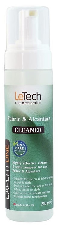 Средство для чистки ткани и алькантары Fabric & Alcantara Cleaner от LeTech EXPERT LINE с технологией BIOCARE Formula обладает уникальным очищающим действием, исключающим риск повреждения ткани, что особенно важно при чистке деликатных тканей (шерсть, шелк). Водная основа средства Fabric & Alcantara Cleaner не содержит хлор, перекись водорода, нашатырный спирт и иные соединения, которые могут вступать в реакцию с красителями ткани.