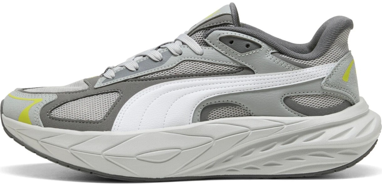 Сетчатая подкладка улучшает воздухообмен, а классическая шнуровка обеспечивает надёжную фиксацию. Резиновая подошва с цепким протектором добавляет устойчивость и уверенность при движении. Вышитые полоски Puma Formstrip по бокам и фирменные элементы брендинга подчёркивают характер модели.