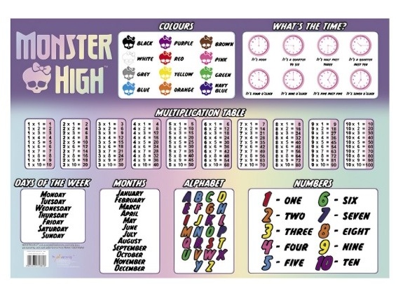 Коврик для стола St.Majewski Monster High, формат А3, двусторонний, 661280 Характеристики товара: - можно использовать как коврик под тарелку с едой в столовой или как защитный коврик для стола при рисовании, письме, черчении или лепке из пластилина, - изготовлен из мягкого, легко моющегося материала, - легко сворачивается для транспортировки, - формат А3.