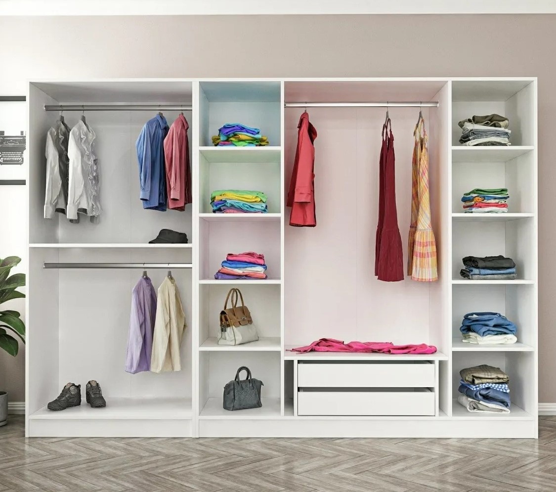 Вместительные секции и продуманное расположение полок создают удобные условия для хранения одежды, аксессуаров и других вещей. Все элементы легко разместить так, чтобы каждый предмет имел своё место и беспорядок больше не появлялся.