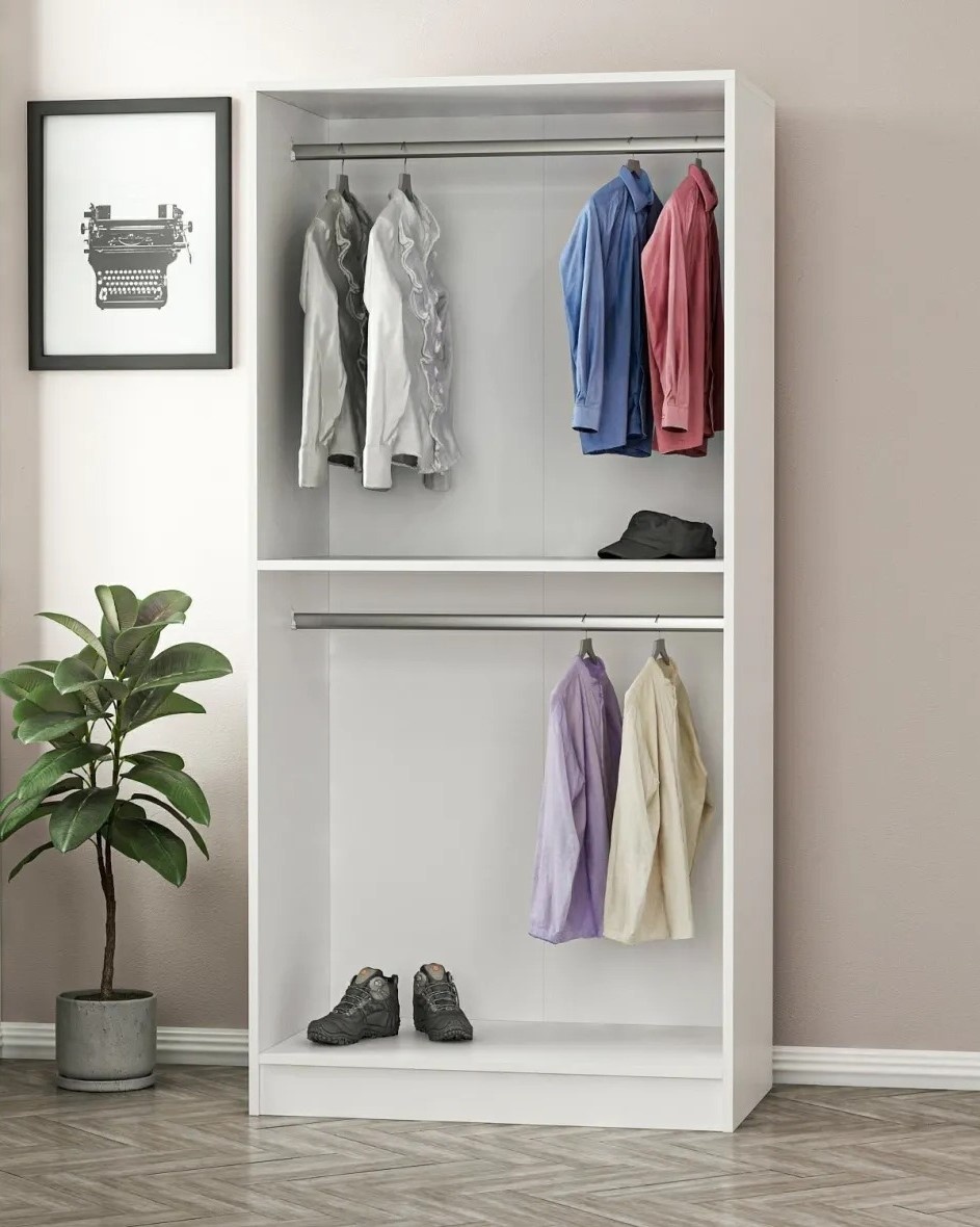 Шкаф изготовлен из ДСП-панелей с меламиновым покрытием. Толщина 18 мм обеспечивает исключительную прочность и устойчивость. Забудьте о хрупких шкафах, которые быстро ломаются — этот шкаф создан служить долгие годы.