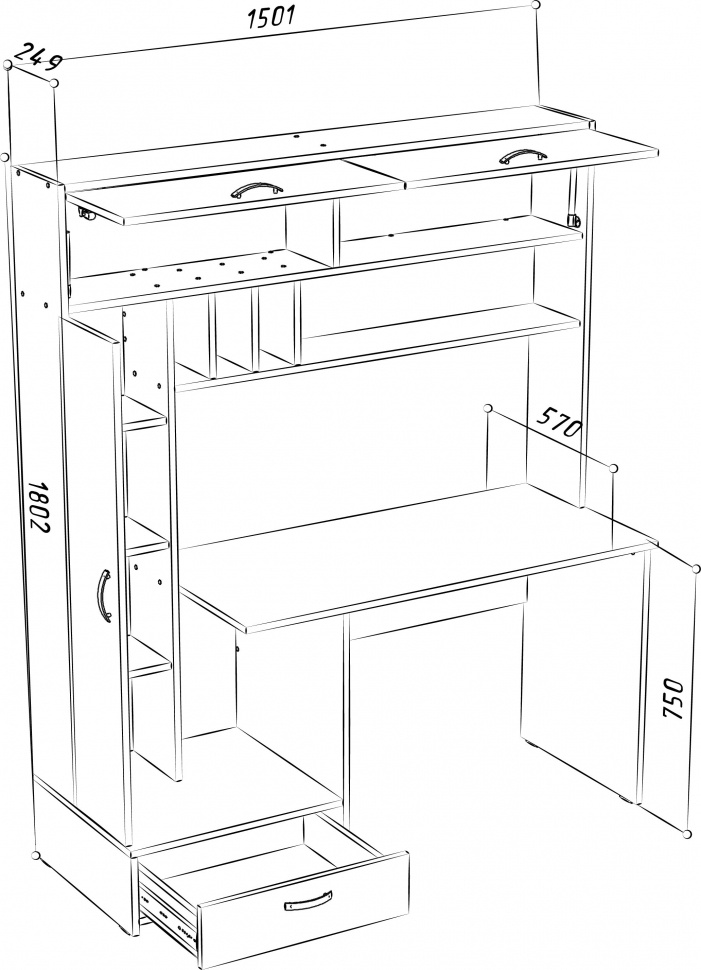 Письменный стол ML-Mobila МЛ-1 Левый Лайт Антрацит/Дуб Крафт Белый