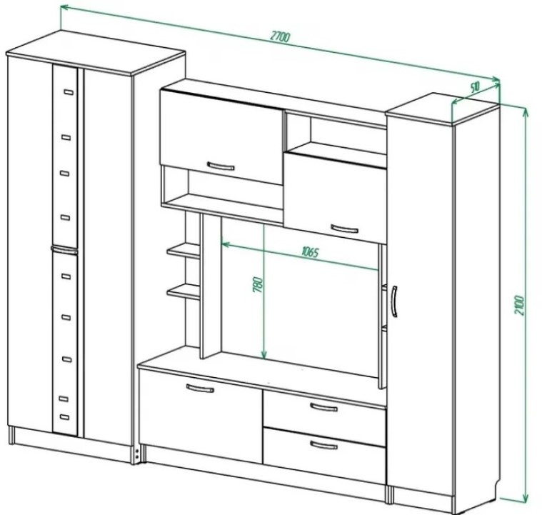 Гостиная ML-Mobila МЛ-3 2650 Крафт Белый/Антрацит
