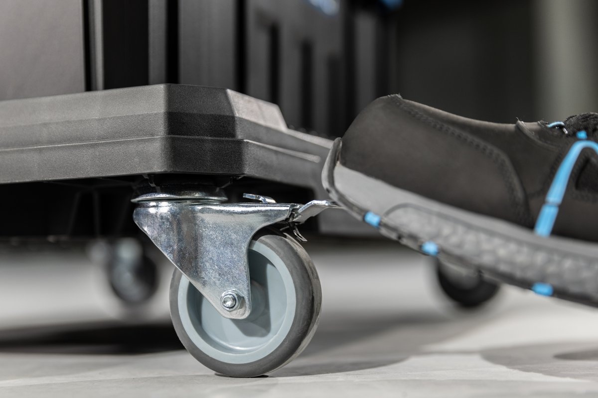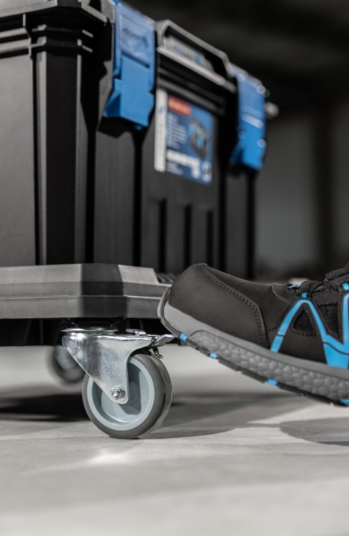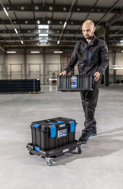 Транспортная платформа на колесах-это универсальный инструмент, который позволяет легко транспортировать все виды продуктов, инструментов или оборудования. Он создан для требовательных пользователей. Он имеет прочную очень хорошо ребристую конструкцию, выдерживающую максимальную нагрузку до 150 кг. Платформа состоит из 4 вращающихся колес, 2 из которых имеют тормоз. Предназначен для профессионального использования. Она отлично используется во многих отраслях, таких как строительство, промышленность, автомобилестроение или логистика.